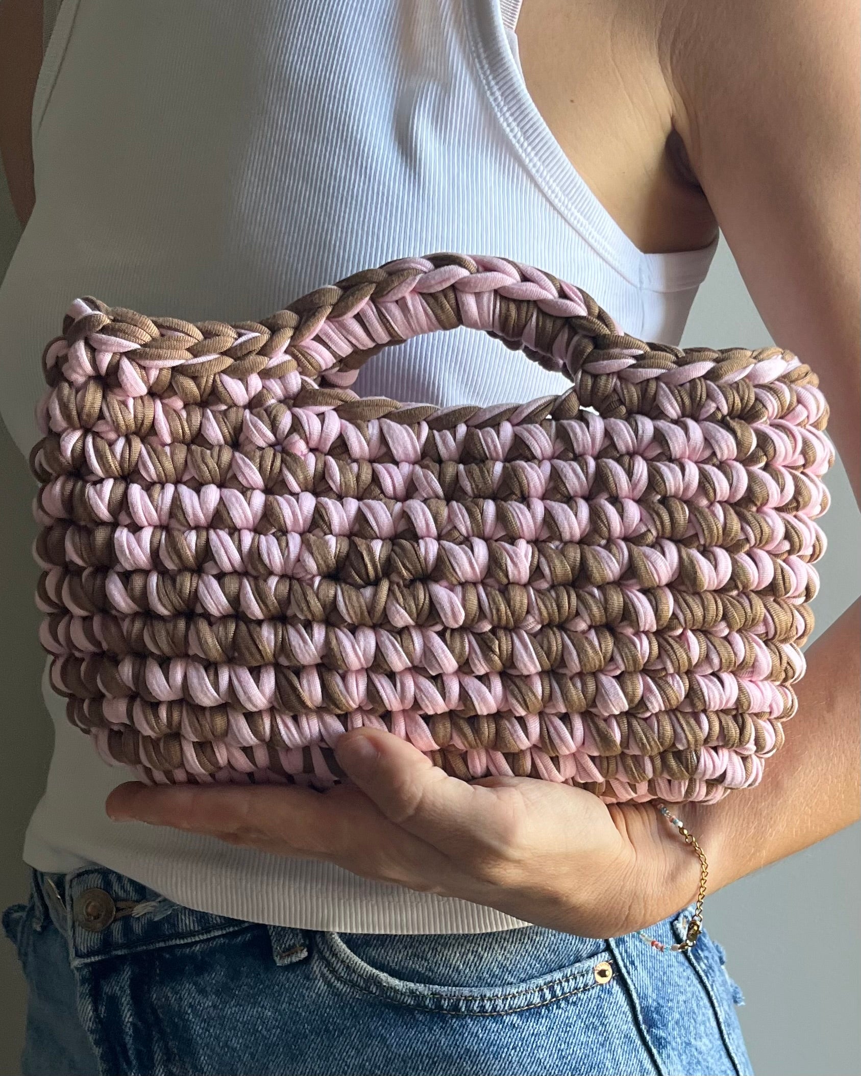 Crochet basket bag designed to be styled your way. Modern, roomy, and effortless. Made for everyone, every day.